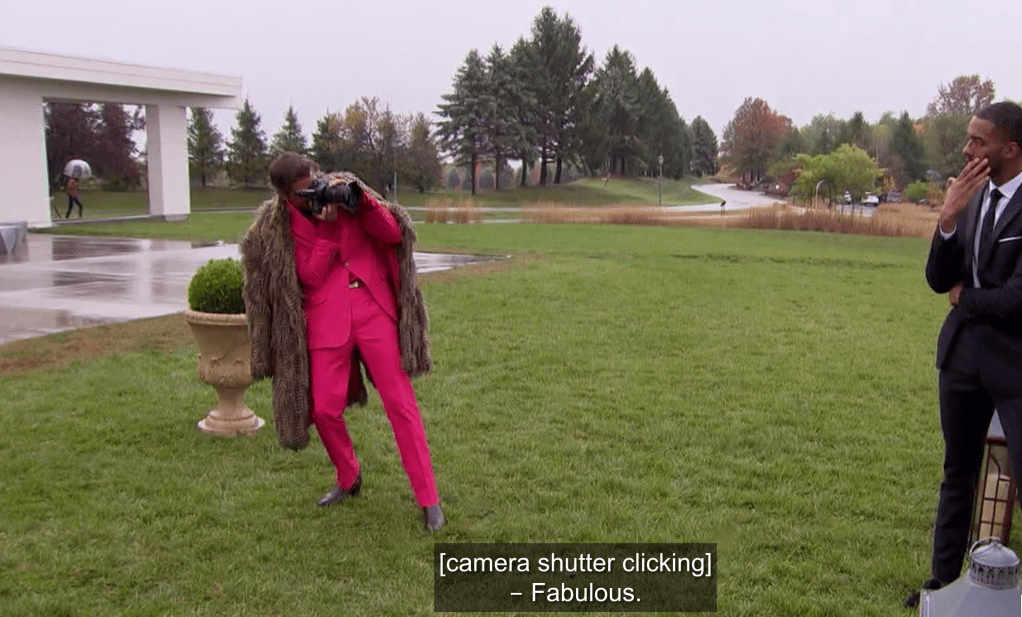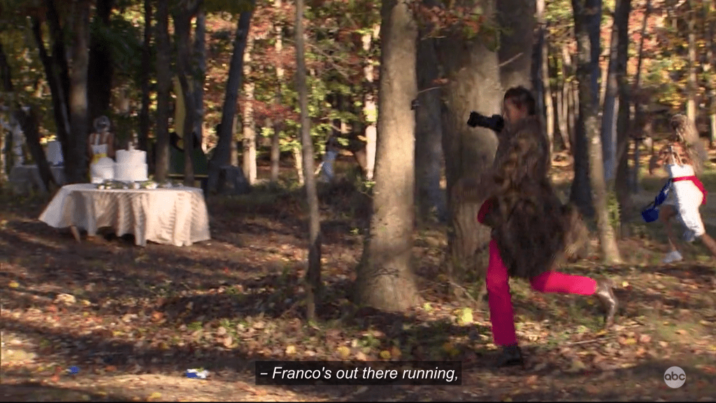 The next day, it’s time for the 18 person group date! Matt is walking up to the date wearing a nice-ass suit which isn’t… usually typical for a group date… As soon as he walks up we see Franco the “photographer” (there has been conjuncture that Franco is more of an actor/character than an actual photographer because all the photos the ABC account was posting were not looking at the camera, ie. taken by production hahhahahha, FRANCOGATE)