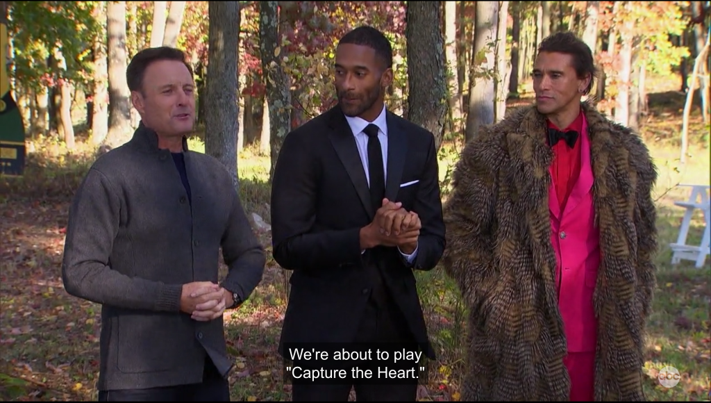 Chris Harrison yells out “Guard and protect your heart” which might seem like a fine generic thing to say if you are a NORMAL CASUAL VIEWER, but guess what, I am the exact OPPOSITE of that! I recently watched Ali Fedotowsky’s season of The Bachelorette on Netflix (season 6) and there was NOTORIOUSLY this man named KASEY who had this weirdly nasally voice, and he was VERY intense, and his phrase was always that he would “guard and protect Aly’s heart” and he eventually got a TATTOO OF THAT. The first and only time someone has gotten a tattoo on the SHOW, LMAO. So anyway, know your history, Chris is paying homage to the late great Guard and Protect Your Heart, Kasey.