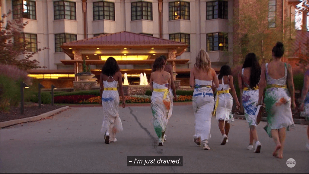 Once home at the “Matt-teau”, the painted girls explain to the girls not on the group date what went down, but the most mortifying thing of it ALL is that they all just go and sit DIRECTLY ON THE COUCHES WITH ALL THEIR PAINT STILL ON???? EXCUSE ME, GO TAKE SHOWERS.