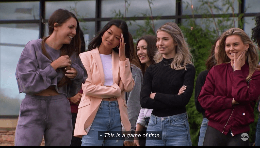Anna, who I am foreseeing to be a mid-ish level player, is in an ITM as Bri is leaving on her date with Matt and says a quote that encaptures the entire ESSENCE of Bachelor to me – “This is a game of time.” And it is! If you don’t get in there quick and early, other girls will and he’ll form connections with them faster than you. You gotta work QUICK. No time for diddle dally or mistakes!