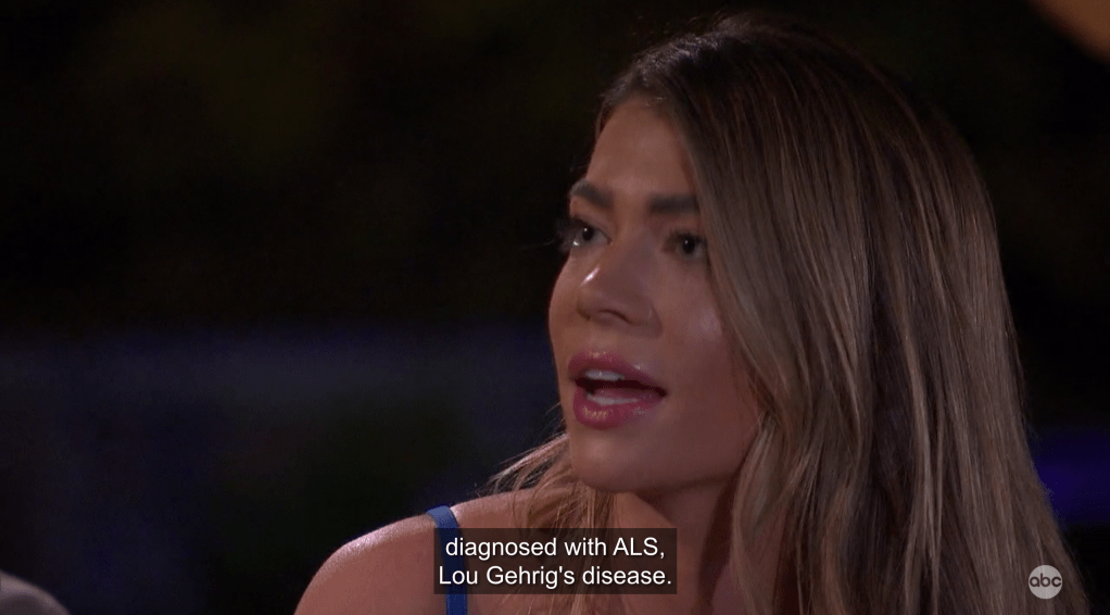 Matt tells her he wants to get into a deeper convo about his work… This is where Sarah finally drops her trauma… Her dad has ALS, Lou Gehrig’s disease, which is where you lose your ability to physically function: to speak, walk, and move, but mentally you’re the same.