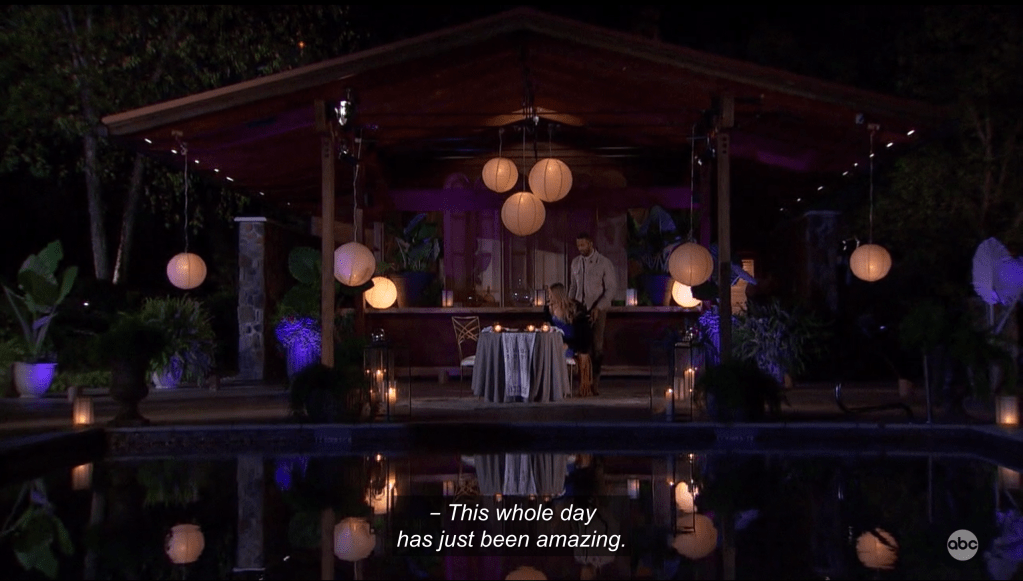 Finally, they get in the hot tub and they are just the cutest and the sweetest even if Matt is very fuck boi vibes, he’s still sweet and cute, UGH. I want her to WINNNNNN. (Maddi had the first one on one on PP’s season and the whole time, I’m, like, there’s no way she wins, but then… She kinda did?) IDK, the whole thing was a train wreck and bad…