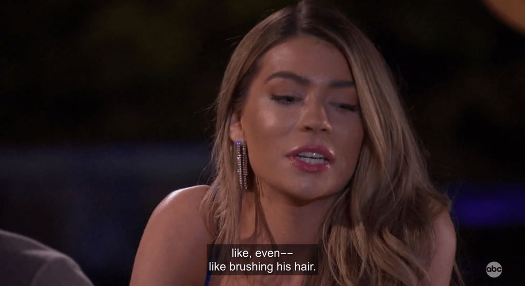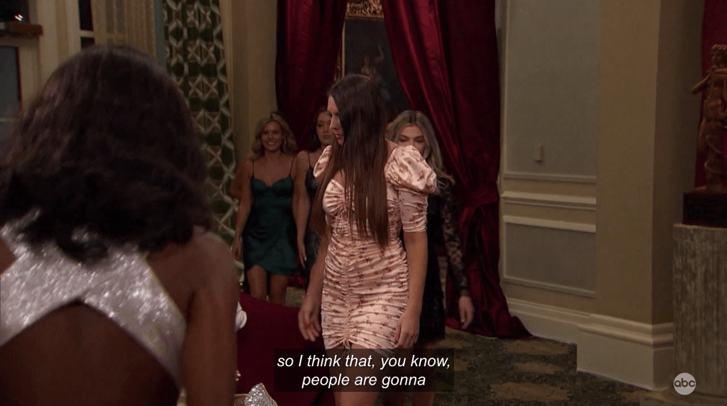 While all the normal, rational girls are sad but “happy” for Bri, Victoria comes in on a tyrant alreADY saying, NO, fuq a BRI, I wanted that date!! While Victoria is going off for absolutely no reason, Abigail and Magi are having the CUTEST INTERACTION IN THE CORNER. I’m STARTING A SEGMENT CALLED FRIENDSHIPS FROM BACH BECAUSE THE BEST RELATIONSHIPS THAT GET FORMED OUT OF THIS SHOW ARE THE FRIENDSHIPS, BECAUSE THOSE ARE THE PEOPLE YOU ARE SPENDING 34/7 OF YOUR TIME WITH. Not your 45-second conversation with the lead, LMAO.