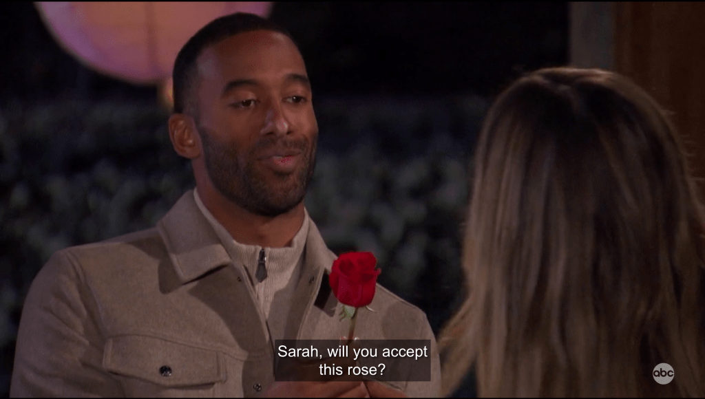 After all this, Sarah gets the rose, and DANGGGG, IDK if it’s the lip filler, but her lips look soft as HELL.