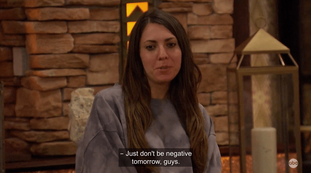 Now… I feel like my brain is being overrun by GOR (Game of Roses, an ingenious Bachelor podcast that breaks down the show in very game-like/sports terms), and I’ll try to limit my references to them in the future, HOWEVER, I feel like this is very important to mention – Their recap for this episode was entitled “The Professional Era” because they discuss how every player in the game has studied and prepared their every move… Bri has an amazing 1-on-1 date with Matt, Sarah as an amazing equally flawless 1-on-1… And the group date there were a lot of bold and strategic “plays”…. The competition is as steep as ever. Similar to the Hunger Games, k*ll (make moves & an impression on Matt) or be k*lled (be sent home by Matt). Essentially, everyone is FUCKING CONTENDERRRR.