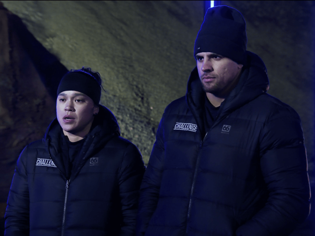 Kam and Cory are still in the lead on the way back from the volcano coal mine, with Kam even telling Cory to hurry up, lmaooo. YES, KAM. I was listening to the Official MTV Challenge podcast with Tori & Aneesa and they talked about how Kam didn’t even play sports or anything in high school, she is just a BEAST. Needless to say, Cory & Kam are the first to get back and start the final puzzle to win the challenge. The edit tries to trick you into thinking they were struggling and wouldn’t get it, but just as Nany & Kyle come into sight running down the last part of the trail, TJ blares the horn and Kam & Cory officially win the challenge. WHOOOOOOOOO! Personally, I’m PSYCHED because this means Kam will be in the final 🙂