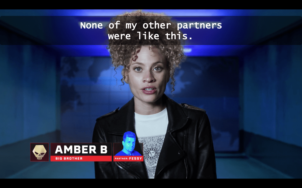Goddamn applesauce for a brain, Fessy’s in an ITM saying, Amber, this literally isn’t about you. I don’t know why you’re getting so upset. I’m, like, TOUCHÉ FESSY, TOU-FUCKING-CHÉ. LITERALLY, NOT ONE THING HAS BEEN ABOUT YOU THIS WHOLE SEASON YET YOU CONTINUE TO WREAK HAVOC TO YOUR FRIENDS AND TREAT YOUR PARTNERS LIKE SHIT EVERYWHERE YOU GO. In an ITM Amber says she misses Darrell as a partner because he was so patient. That’s really sweet, I miss Darrell too.