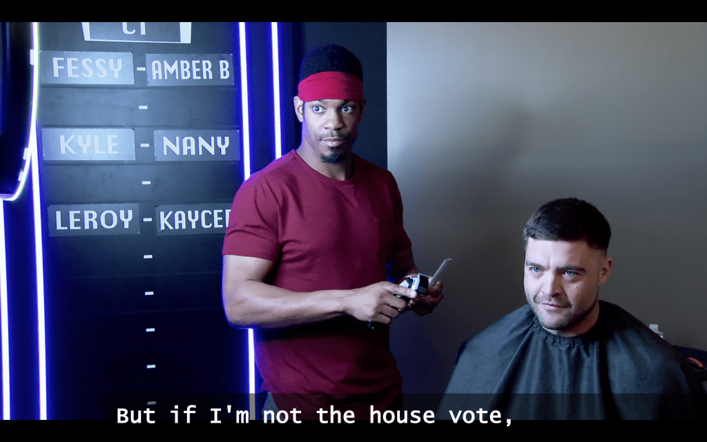 That night at the blow-up clerb (which is turning into people just sitting around at tables, talking to each other cuz they ain’t tryna party with the same 7 people every night, lol), Leroy sits down with Kaycee at the club, and he’s, like, PLEASE, Kaycee. We’ve been partners almost all season… Please do not say my name for the house vote. Kaycee’s, like, oh fuuuuuuu…