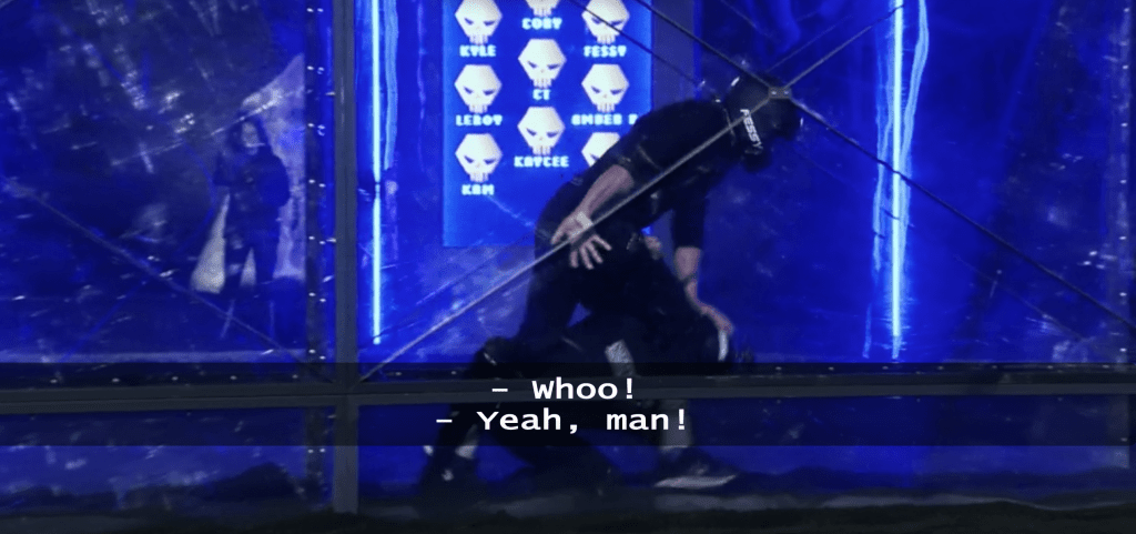 This is now Fessy’s 2nd injury caused in an elimination out of 2 seasons (the first being Jordan Wisely on Total Madness (S35), which was coincidentally the same shoulder type injury (separating the collarbone from the A.C. joint) that caused the end of his (Fessy’s) football career). You could probably throw Nelson in there, too, because Fessy FUCKED him UP. I need you to have some common human COURTESY, and a sense of self-awareness, GEESH. I can’t believe I’m saying this but I think Fessy might annoy me more than both Josh & Wes at this point (this is biased, as those two are no longer on the seasons/in my weekly viewing, but still). He makes me so MAD.