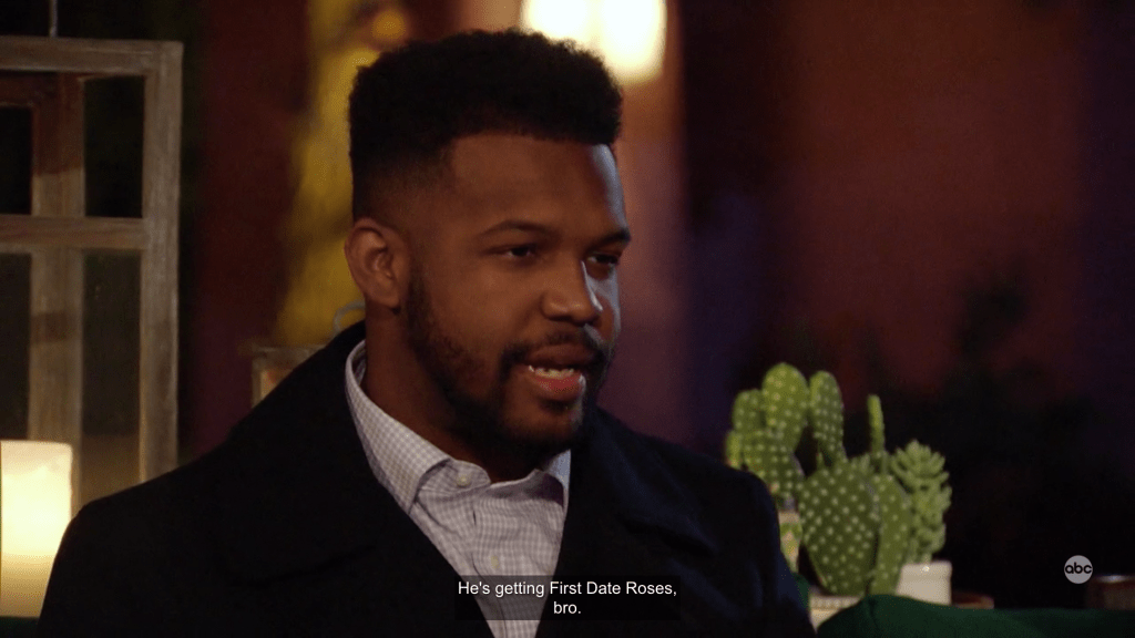 Katie returns to give out the group date rose, and despite Andrew assuring the producer (mostly himself) in an ITM right before that, there’s noooo way Tre will get the rose…. Tre gets the rose. Katie goes on to ask more about the Thomas allegations to which everyone chimes in their agreement. MORE PLAYER UNIONIZATION.