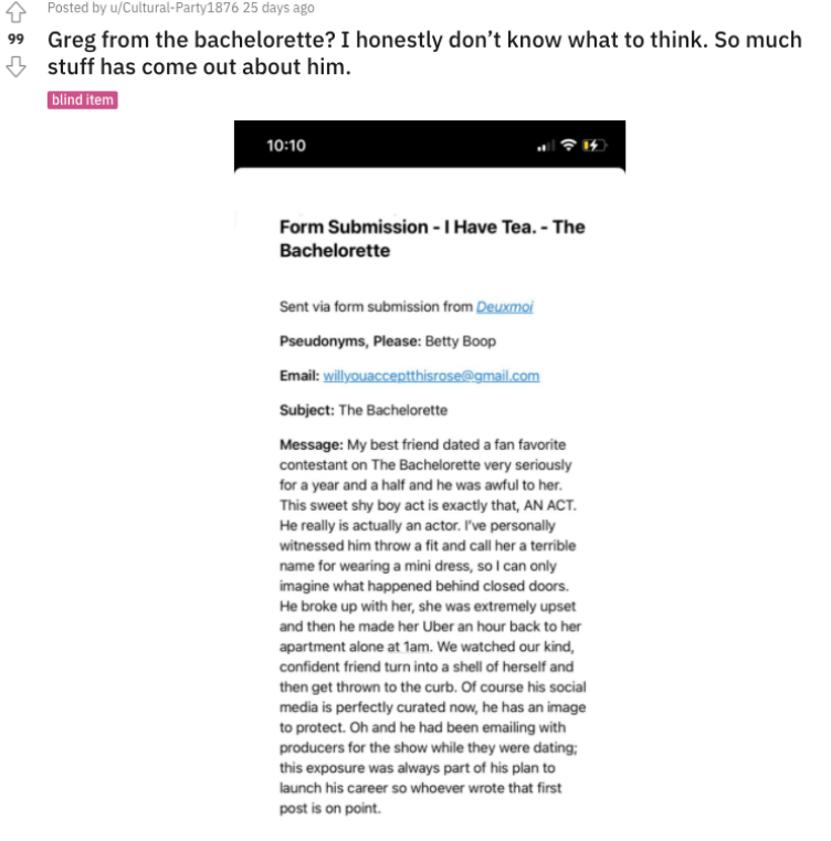 Apparently, there’s a buzz on Tik Tok about Greg because he’s done acting classes and everyone is saying he actually wants to be an actor so that makes his appearance on the show less sincere?? Like, hunni!!!! No one on this show is sincere in the first place, I’m so sorry to tell you this. I wouldn’t be either!!! I’m here for the followers, hunni, and SURE if I actually do fall in love… obviously, that’s a BONUS. Also, I’m like… okay if you want to make that reduction from that, SURE, but that is literally nothing compared to all the stuff that came out about Rachael Kirkconnel’s racist actions. Greg, although not my favorite, is still innocent until proven guilty to me.